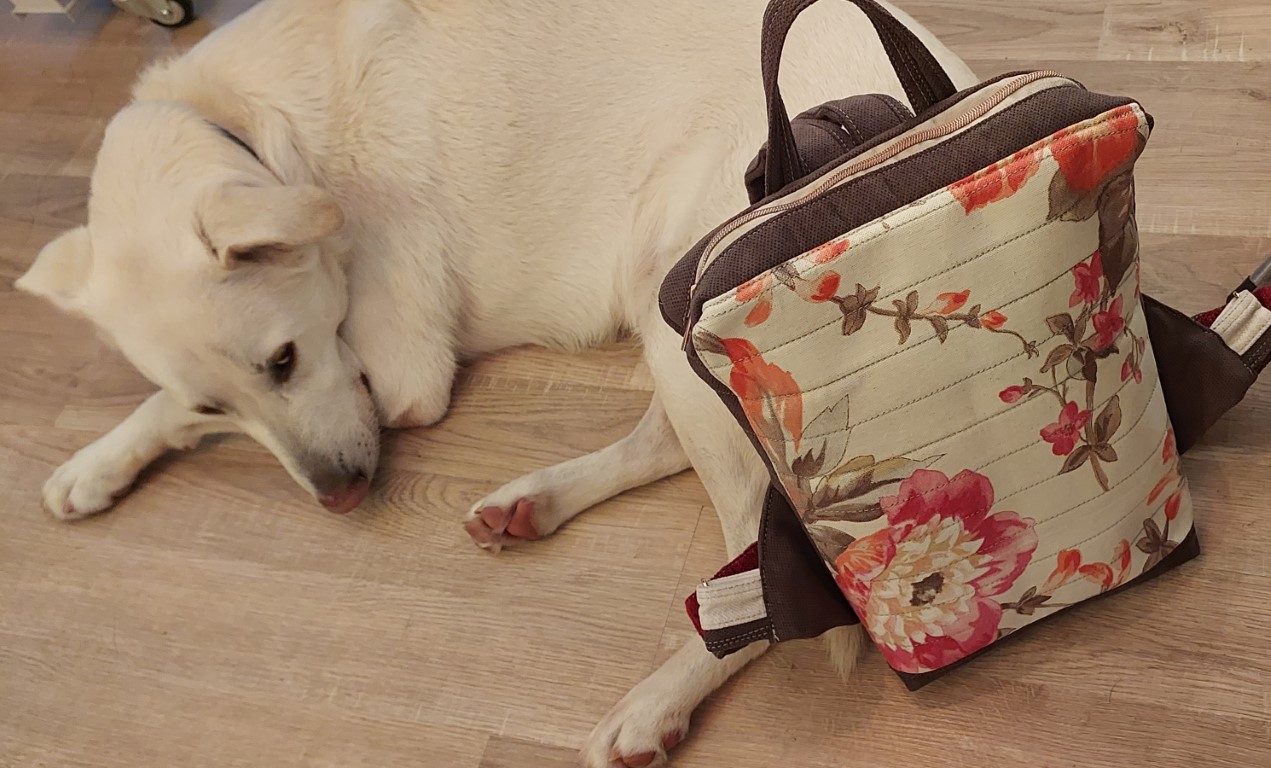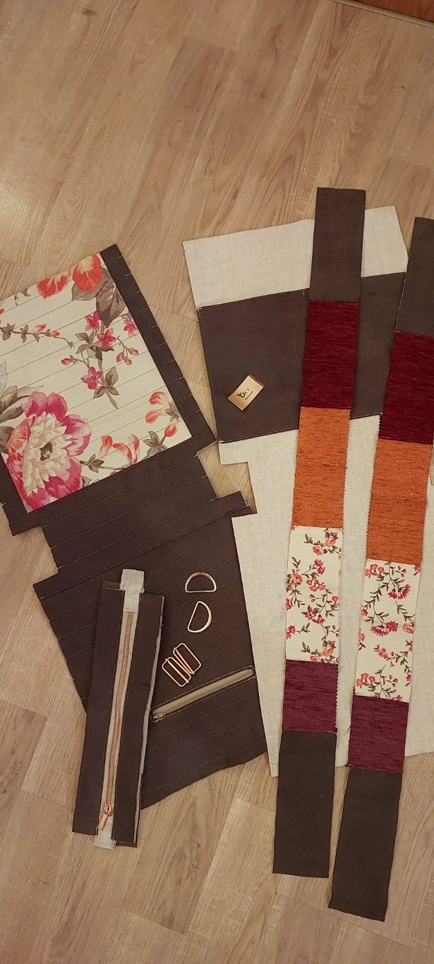 תיק גב חום כתום פרחים