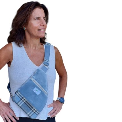תיק אלכסון שטוח משבצות תכלת